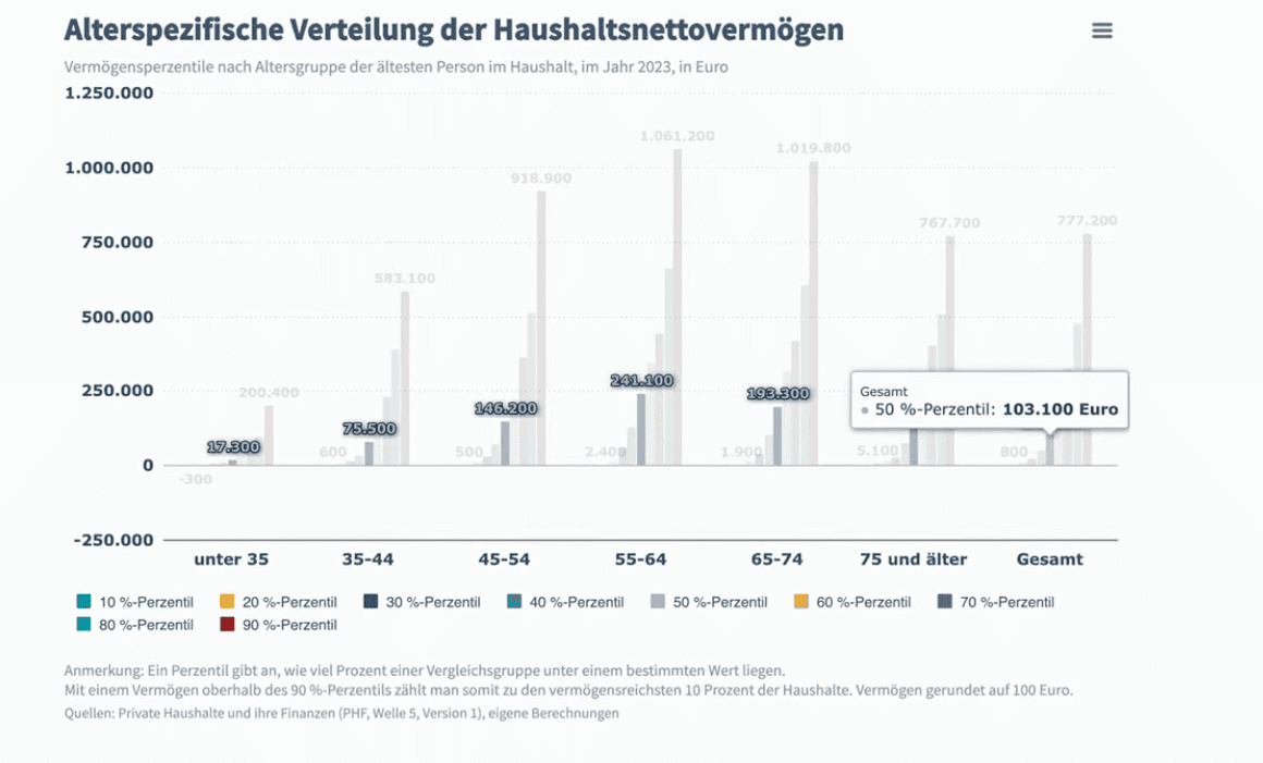 Once your basic investments are consistently up and running, your next major milestone is achieving €100,000 in net worth. Statistically speaking, €100k puts you right at the national average in Germany. And that tells us something very important: the first €100k really is the hardest. Why? Because in the beginning, your savings are doing most of the work—your investments aren’t generating massive returns yet. You’re building solid financial habits, not yet profiting from explosive compound growth. But once you hit that €100k mark, your money truly starts working harder than you do.